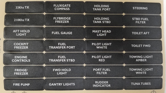 SPOD Legend-Label - Stickers to Identify switches - amazon.com in All-Purpose Labels 48 offers from $9.20 BUNKER INDUST Set of 2 Decal Sticker Label Sheet for Caravan Marine Boat Dash Board Instrument Rocker Switch Circuit Panel GPS Horn Light,Black (45 Pcs Each) 325 1 offer from $9.50 mankk 2PCS Rocker Switch Label Decal Waterproof DIY Night Glow Graphic Text Stickers for Marine RV Circuit Switch Panel M-067 Project Skyview Part 16 - Instrument Panel Labels - YouTube The panel is far enough along where I'm comfortable enough with making my nifty computer generated labeling. The video explains the process. It's very time...