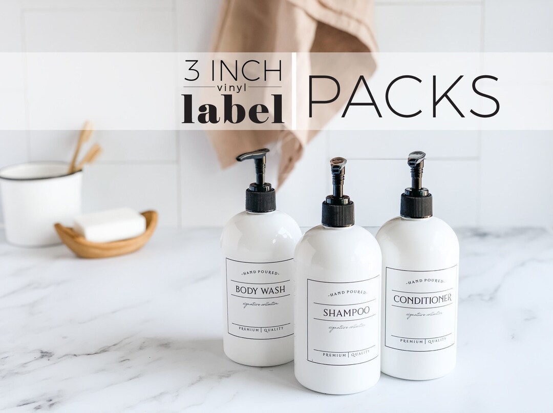 3" Label Packs - Waterproof Vinyl Labels, Shampoo Conditioner Labels, Mix & Match to Create Your Pack, Bathroom Organization Labels