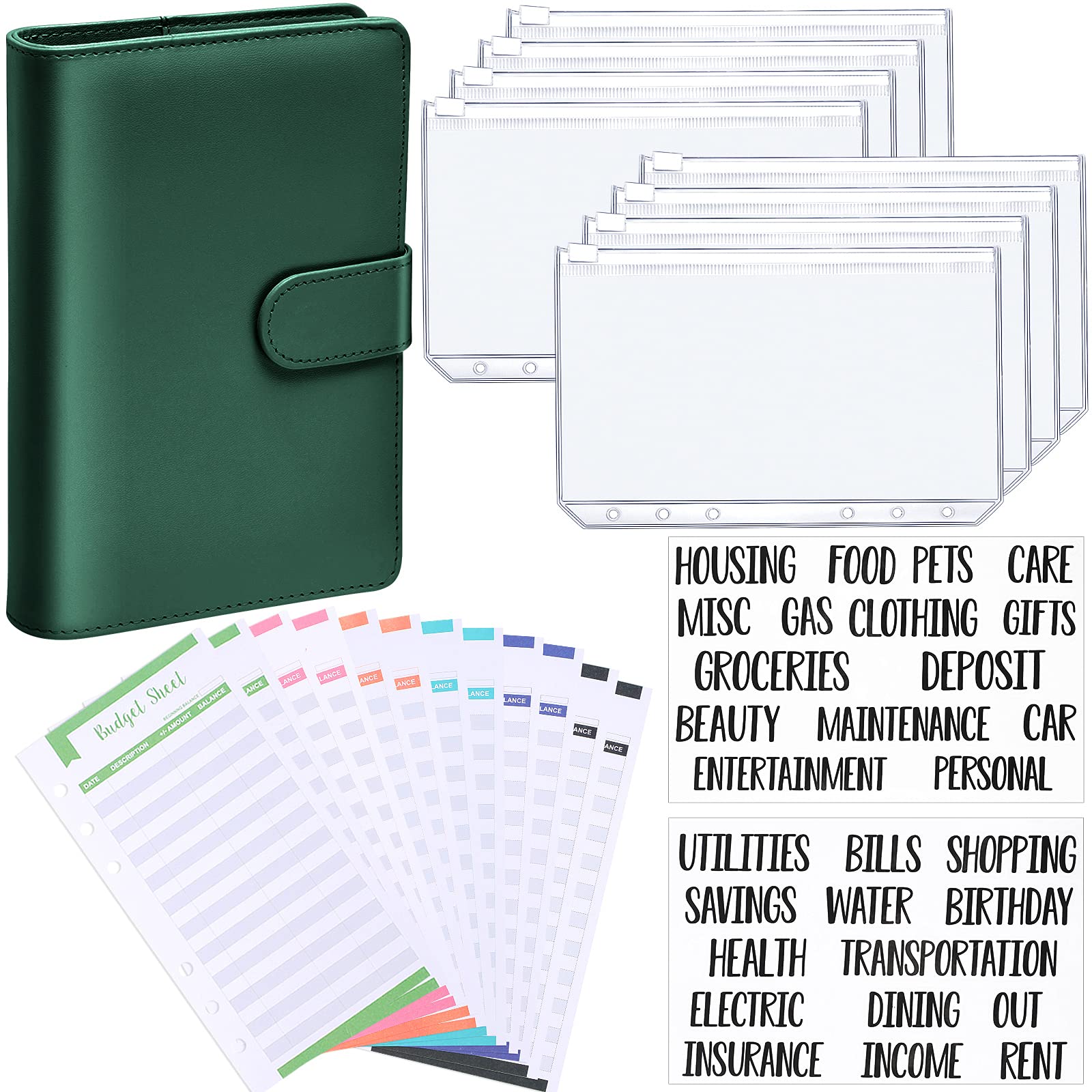 Zonon PU Leather Notebook Binder Budget Planner Organizer 6 Ring Binder Cover, 8 Pieces Binder Pockets, 12 Pieces Expense Budget Sheets and 26 ...